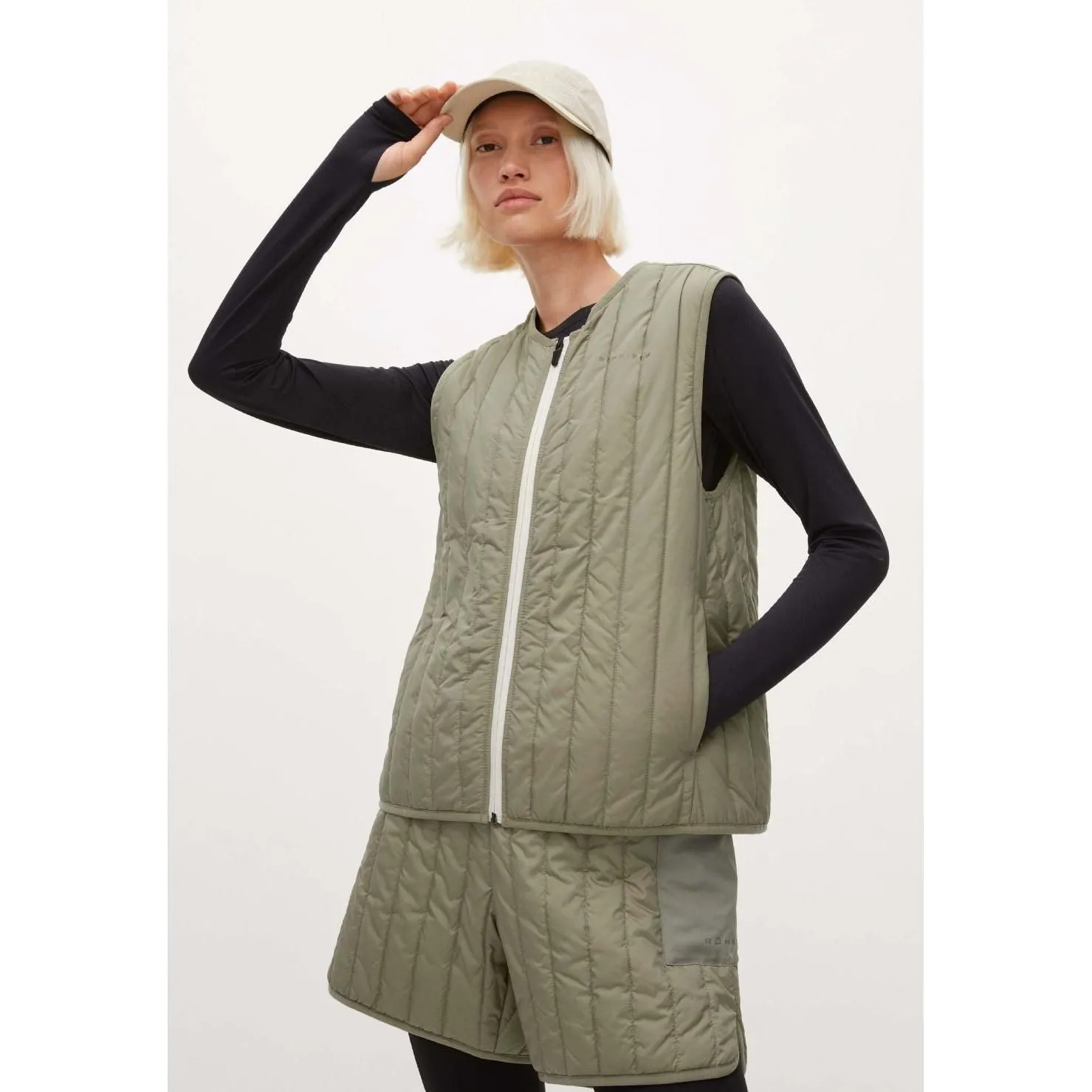 A luxuriously designed vest crafted from 100% recycled polyester and filled with 100% recycled materials. The quilted design features a full zip with an auto-lock slider and Röhnisch puller, slanted side pockets, a drawstring bottom, and an elegant logo print at the front.