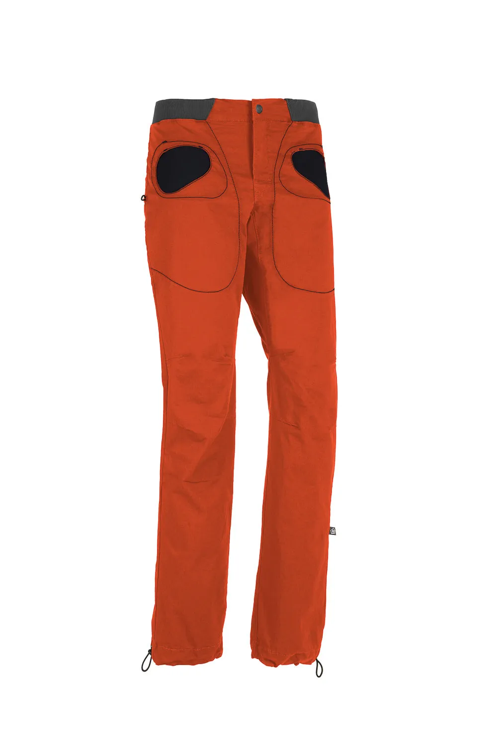 The RONDO STORY is an urban climbing trousers. The fabric is stretch gabardine. The inside pockets is in contrast color fabric. Embroidery on the back. Adjustable leg bottom and waist. Brush holders on both sides. Made in Italy.
